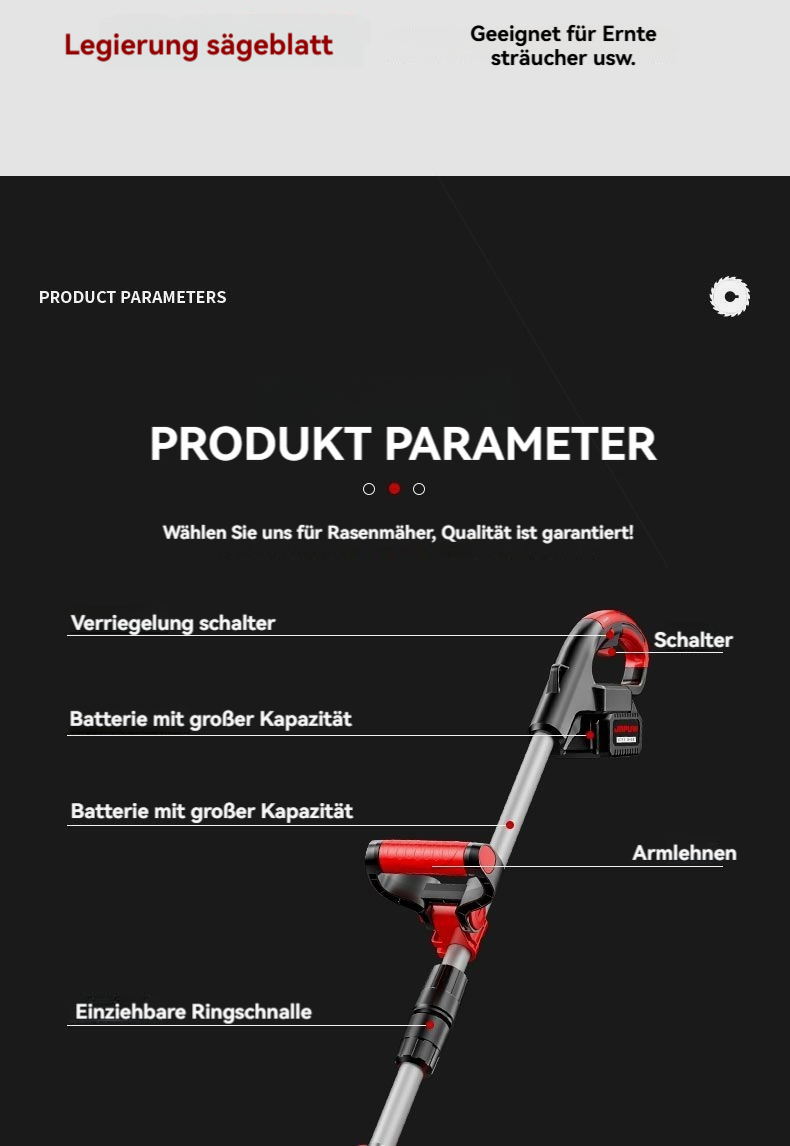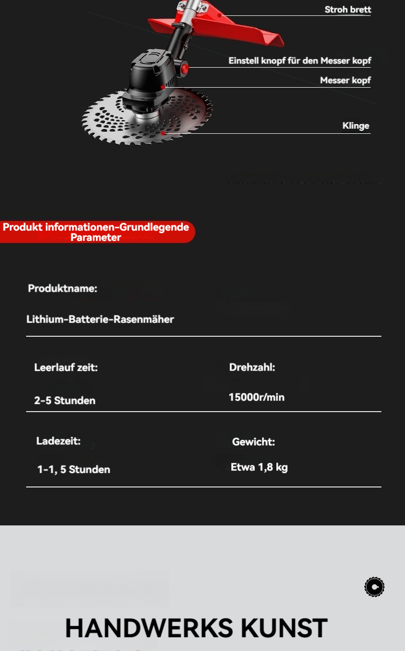 Multifunktionaler Lithium-Mäher mit hoher Leistung, einfach zu bedienen, erleichtert die Arbeit